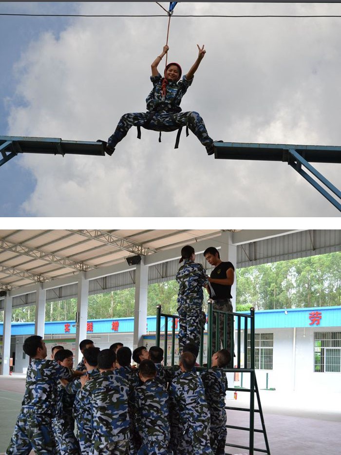 此次訓練營以“熔煉團隊?共創輝煌”為主題,訓練項目主要包括幸福團團坐、破冰起航、挑戰150秒、學習亮劍精神、高空項目、信任背摔、翻越畢業墻等。