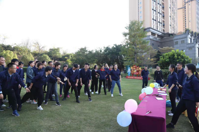 隨后,團建游戲正式開始,全體人員分成五組,每組現場選隊長、取隊名及口號,并將隊名、口號分別寫在卡紙上。游戲有一圈到底、有獎競答、多人兩人三足、電臀抖甩、愛的魔力轉圈圈、指東往西、多人你畫我猜等,這些游戲既鍛煉了體能,還活躍了思維。每一個環節獲勝隊伍都能獲得獎品及獎勵分,累計分數最高的隊伍還能獲得一等獎大禮包一份。